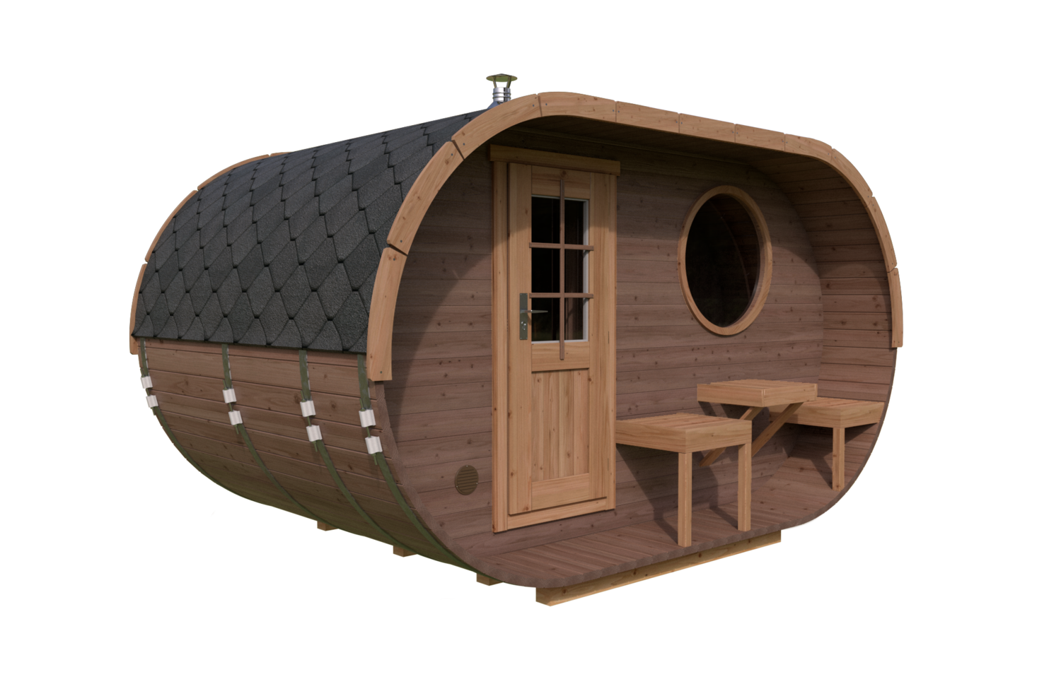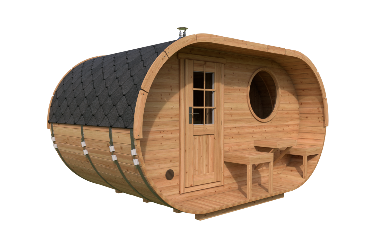 Ovale Sauna 1 mit Terrasse (2,4×4)