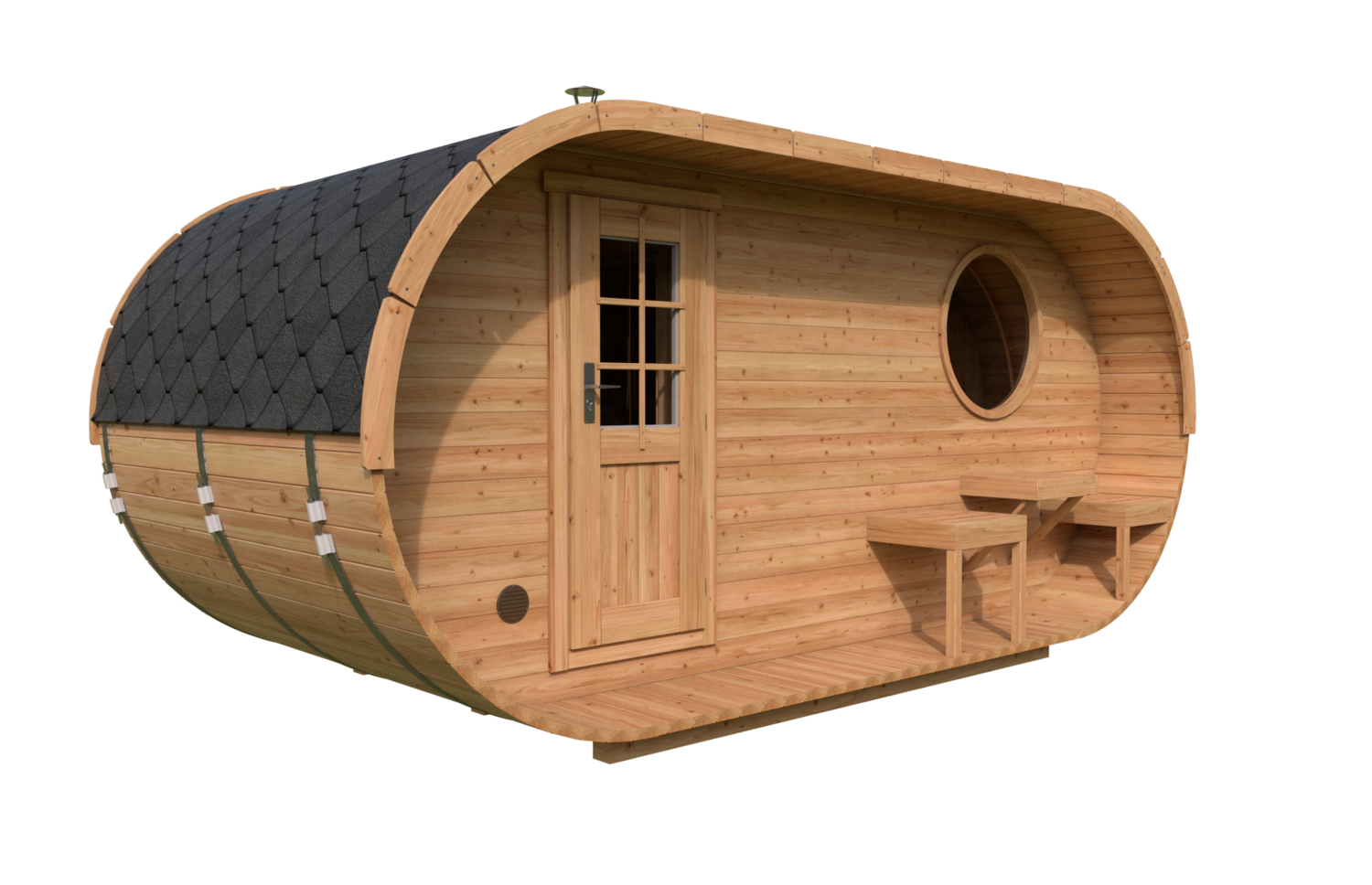 Ovale Sauna 1 mit Terrasse (2,4×4)